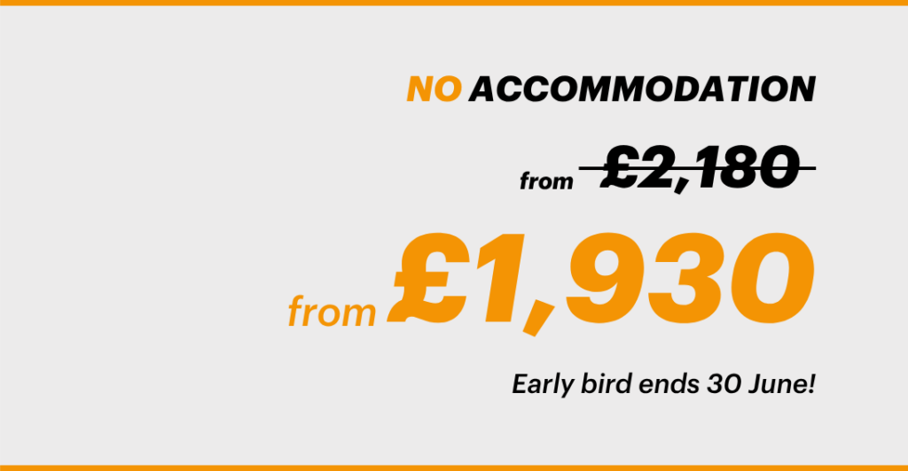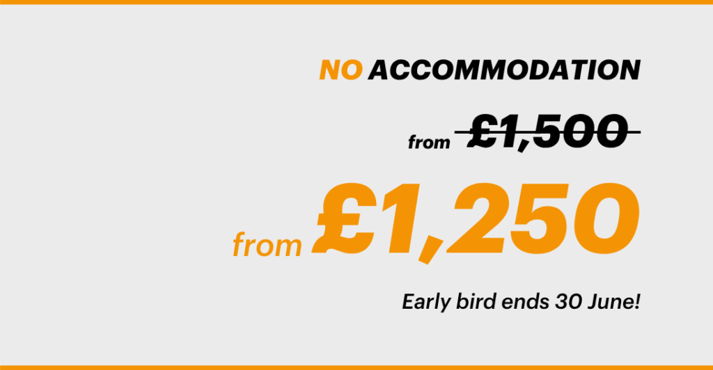 - For tickets that include accommodation, your hotel stay is covered for the duration of your selected programme (three nights for masterclass delegates, two nights for standard programme delegates)