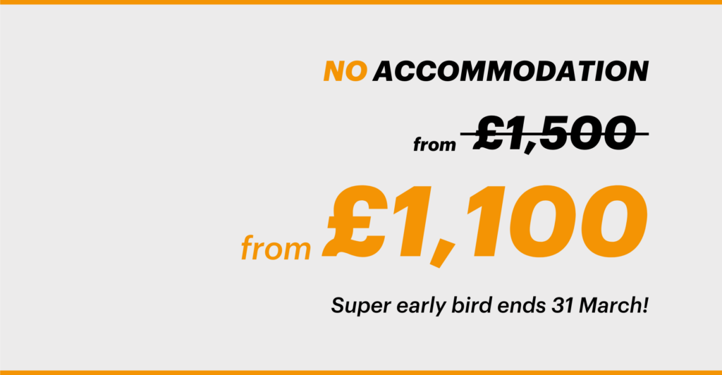 - For tickets that include accommodation, your hotel stay is covered for the duration of your selected programme (three nights for masterclass delegates, two nights for standard programme delegates)